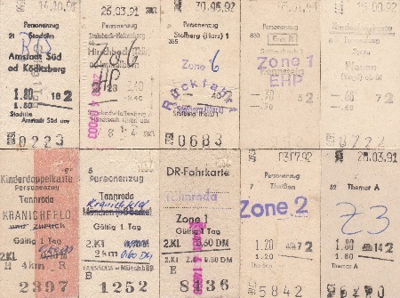 Vor 20 Jahren ergab sich die Möglichkeit, ohne Visum und andere Formalitäten sich frei in der DDR zu bewegen. Dies hat mich inspiriert, auch dort Fahrkarten zu sammeln. Bei mehreren Fahrten, hauptsächlich in Thüringen, konnte ich einiges zusammentragen.