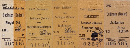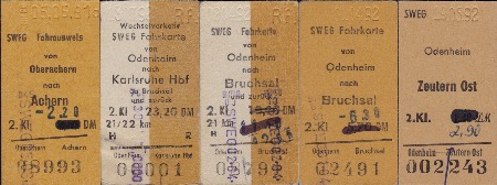 b) Zeitkarten der Südwestdeutschen Eisenbahn-Gesellschaft (SWEG)